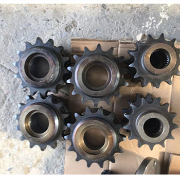 The lower sprocket of the paver is assembled in the distribution box. The inner part of the lower sprocket is connected to the distribution half shaft by bearings, and the outer part is connected to the distribution connecting plate. The connecting plate is connected to the auger shaft and is connected to the upper sprocket of the distribution driven by the distribution reducer through the small chain of the distribution. When the distribution reducer is working, the upper sprocket drives the lower sprocket to rotate, and the lower sprocket then drives the auger shaft to rotate through the connecting plate, Only then can the material be evenly dispersed to both sides, playing a role in material distribution.
